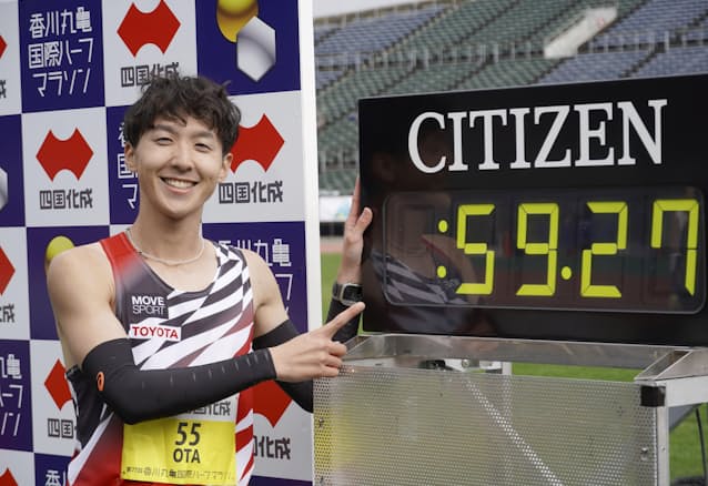 陸上の香川・丸亀国際ハーフマラソンは2日、香川県のPikaraスタジアム発着で行われ、男子3位となった太田智樹(トヨタ自動車)が59分27秒の日本新記録を樹立した。小椋裕介(ヤクルト)が2020年に出した1時間0分0秒を大幅に更新した。