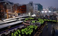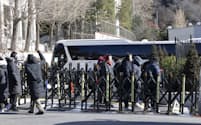 15日は捜査員らが大挙して公邸につながる小道の正門に集まり、待機していた警察関係者が正門を通過して中に入った。はしごを運び込む様子もみられた。
