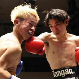 宮澤琉夏(左)とのデビュー戦は、ドローに終わった横浜海斗=文京区・後楽園ホール(撮影・高橋朋彦) プロボクシングのミニマム級4回戦が6日、東京・後楽園ホールで行われた。横浜海斗(26)=Dangan品川=が、宮澤琉夏(21)=伴流=と0-1の4回判定で引き分け。プロデビュー戦を白星で飾ることはできなかった。 前半は強打を被弾して劣勢だったが、3回に右フックを連続でヒット。最終4回には足を使ってきた宮澤を追いかけ、最後まで打ち合ったが、37-39、38-38、38-38で痛み分けとなった。横浜は「右のパンチで相手がちょっとふらついたのかなっていうようなラウンドはありましたね。最初は緊張したんですけど、試合が始まったら緊張はほぐれました。少し右のパンチで(ポイントが)取れたかなとは思っていました」と悔しがった。 23歳だった大学4年生の8月にDANGAN越谷ジム(埼玉・越谷市)にフィットネス目的で入会し、練習を重ねているうちにプロを志した。就職して東京へ引っ越したため、DANGAN AOKIジム(東京・新宿区)を経てDangan品川ジム(東京・品川区)所属となった。 昨年7月にプロテストを受験して合格。昨年2月に開業した元WBC世界女子ライトフライ級王者の富樫直美さん(49)が会長を務めるDangan品川ジムのプロ第1号となった。 現在も所属ジムのプロボクサーは海斗だけだが、ワタナベジムなどでスパーリングを重ねた。前日計量後には兄がウーバーイーツで自宅に鰻やおかゆなどのリカバリー食を送ってくれ、それを食べてリングに上がった。 富樫会長はジムの初陣を終え、「仕事をしながらボクシングをやるんで、向き合う時間が少ない中、頑張ったかなと思います」と横浜をたたえた。横浜は「勝ちたかったんで(100点満点で)10点ぐらい。勝ちたいなって思ったんで、続けていきます」とスマホアプリのエンジニアを続けながら初勝利を目指すことを誓った。 興行はボクシング動画配信サービスのBOXING RAISEで午後5時50分から生配信された。宮澤のプロ戦績は2戦1敗1分けとなった。(尾﨑陽介)