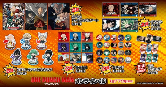 <ワンパンマン オンラインくじ 概要> 販売期間:2025年1月29日(水)12:00~2025年2月26日(水)11:59 販売価格:1回 770円(税込)※別途発送手数料が掛かります。